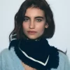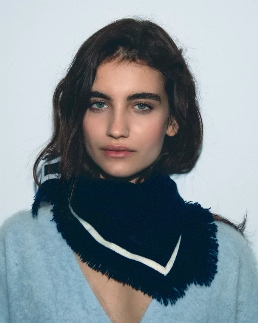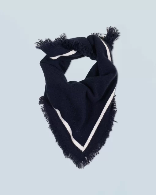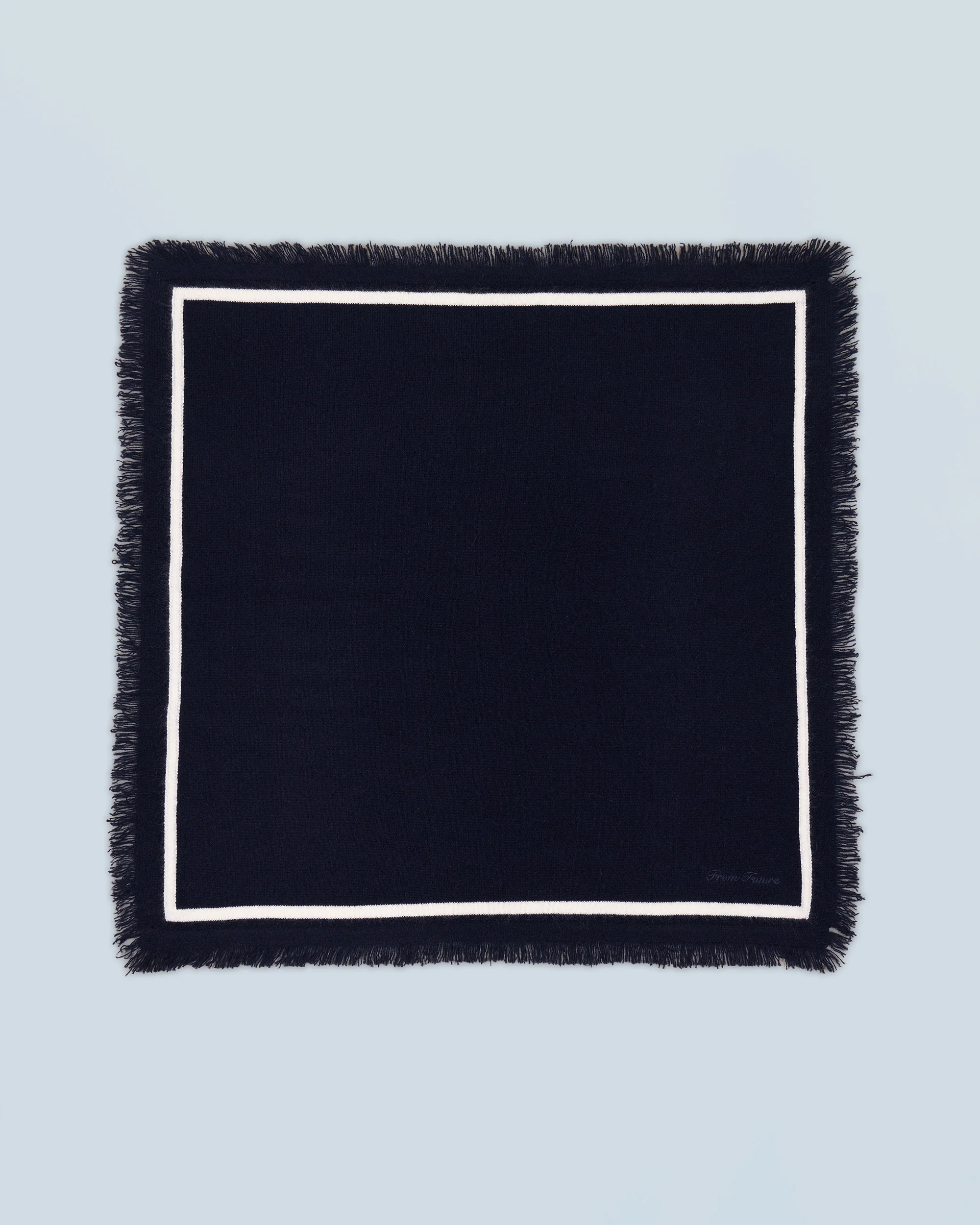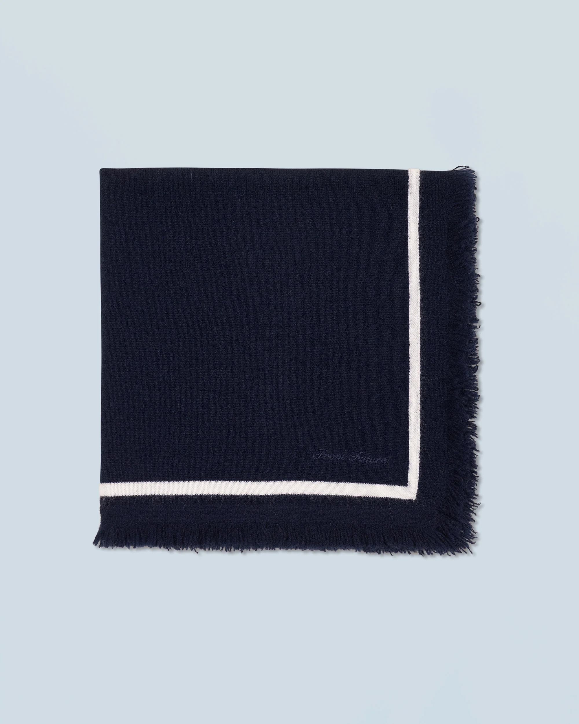The must-have accessory for winter is here. Perfect for enhancing your look, our 100% cashmere scarf combines elegance and comfort. Crafted in a 2-ply knit for unparalleled softness, its FROM FUTURE embroidery and unique knitting pattern create subtle color variations in navy and ecru, adding a timeless touch of boldness to your style.
