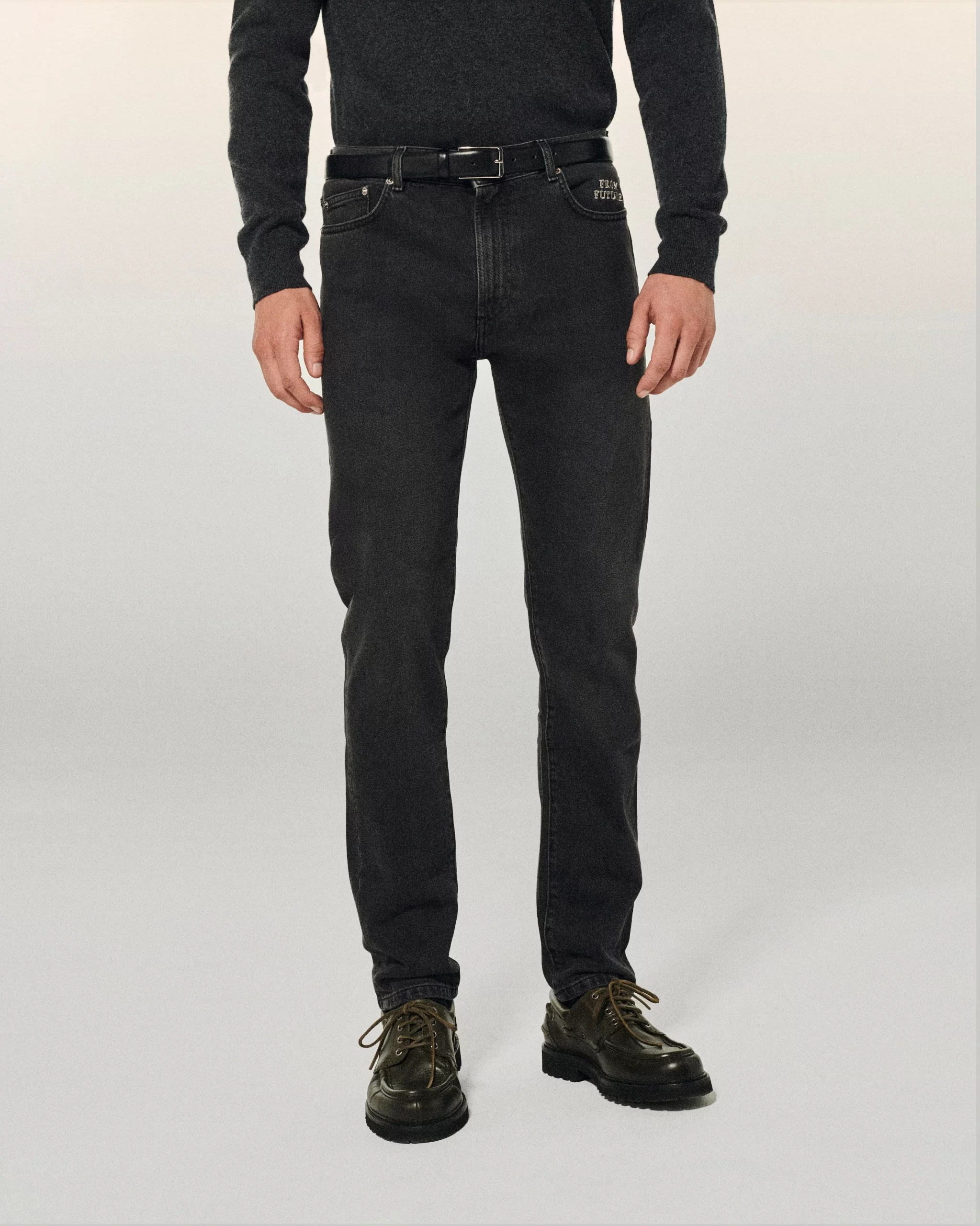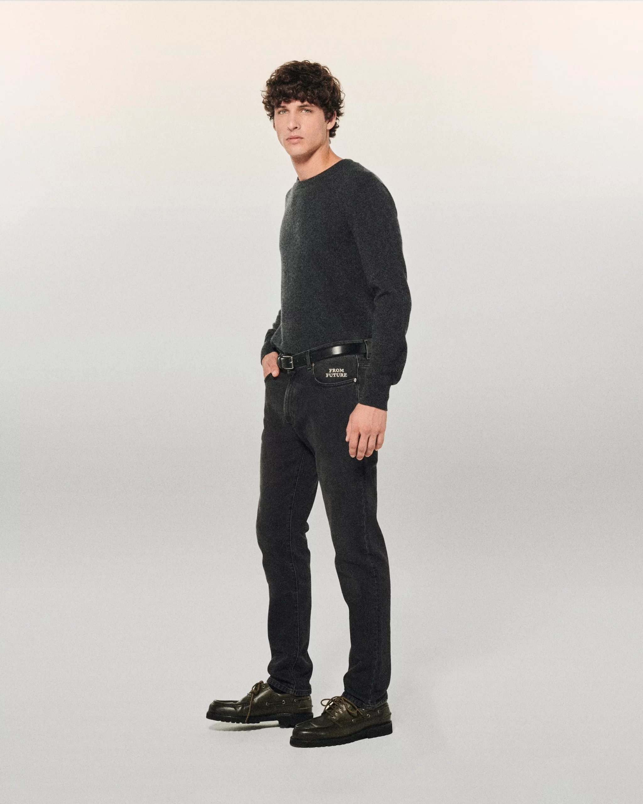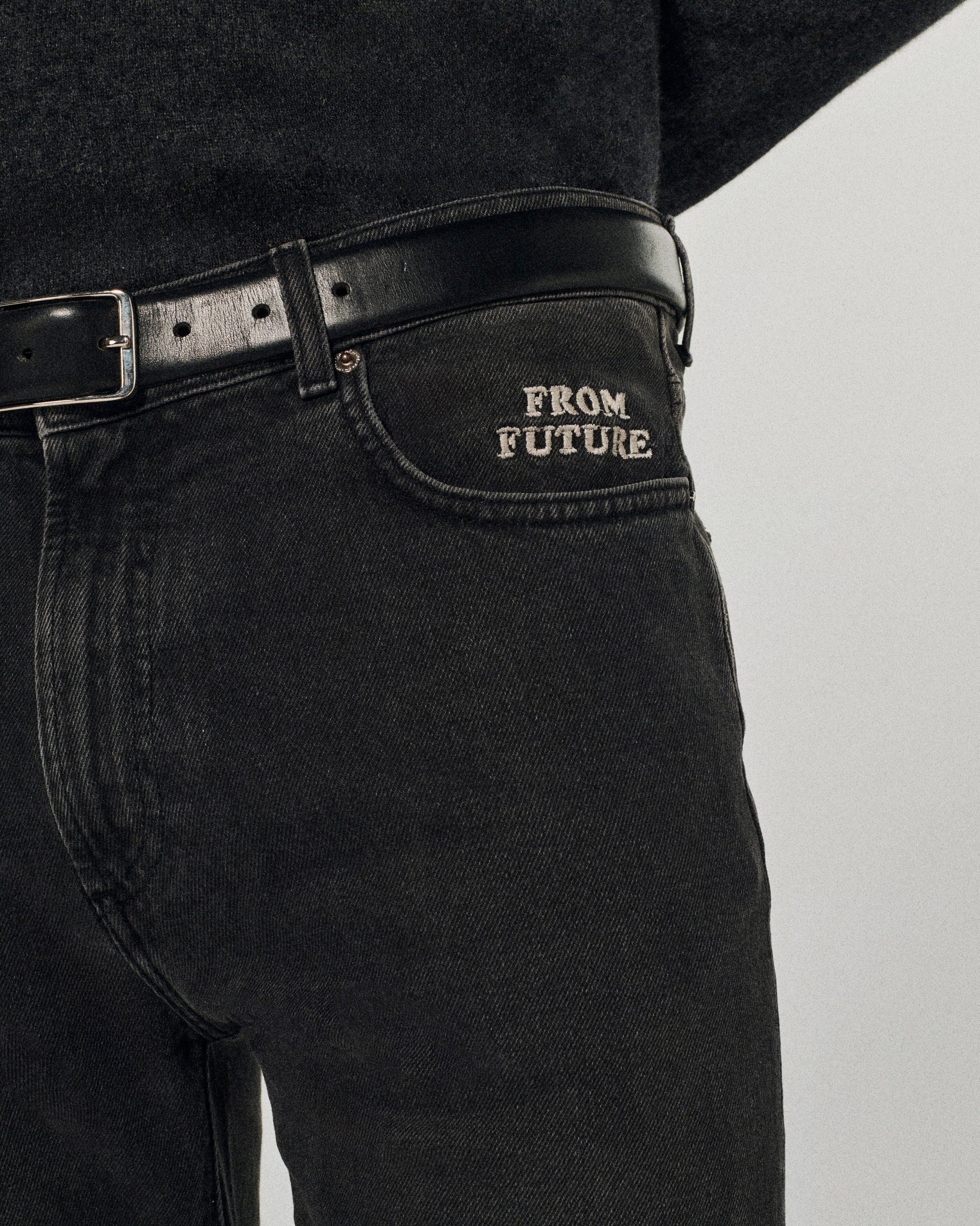 FROM FUTURE jeans are made from recycled cotton from industrial fabric scraps (74% cotton, 25% recycled cotton, 1% elastane). The colors have been worked with care thanks to the eco wash system: an ecological washing process that drastically reduces the consumption of water, energy and chemical products.