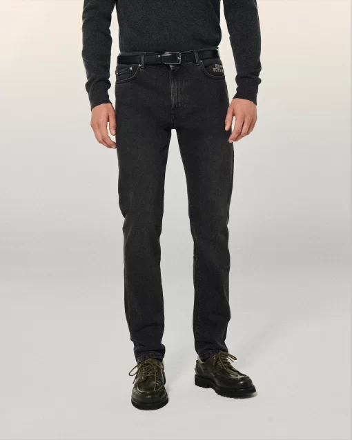 All about Jacob: slim fit jeans. FROM FUTURE semi-hidden embroidery on the left pocket. Colourful logo patch on the back. Front logo button closure.