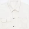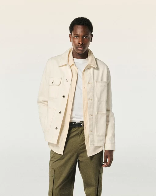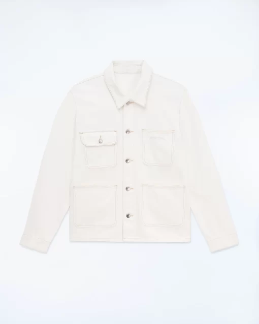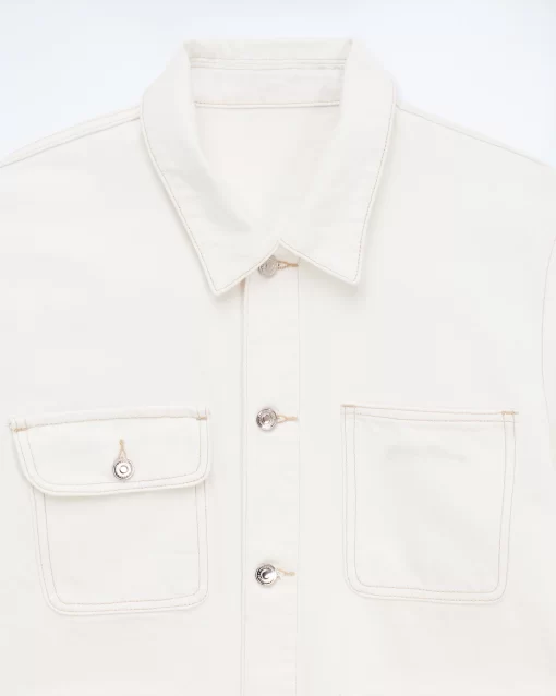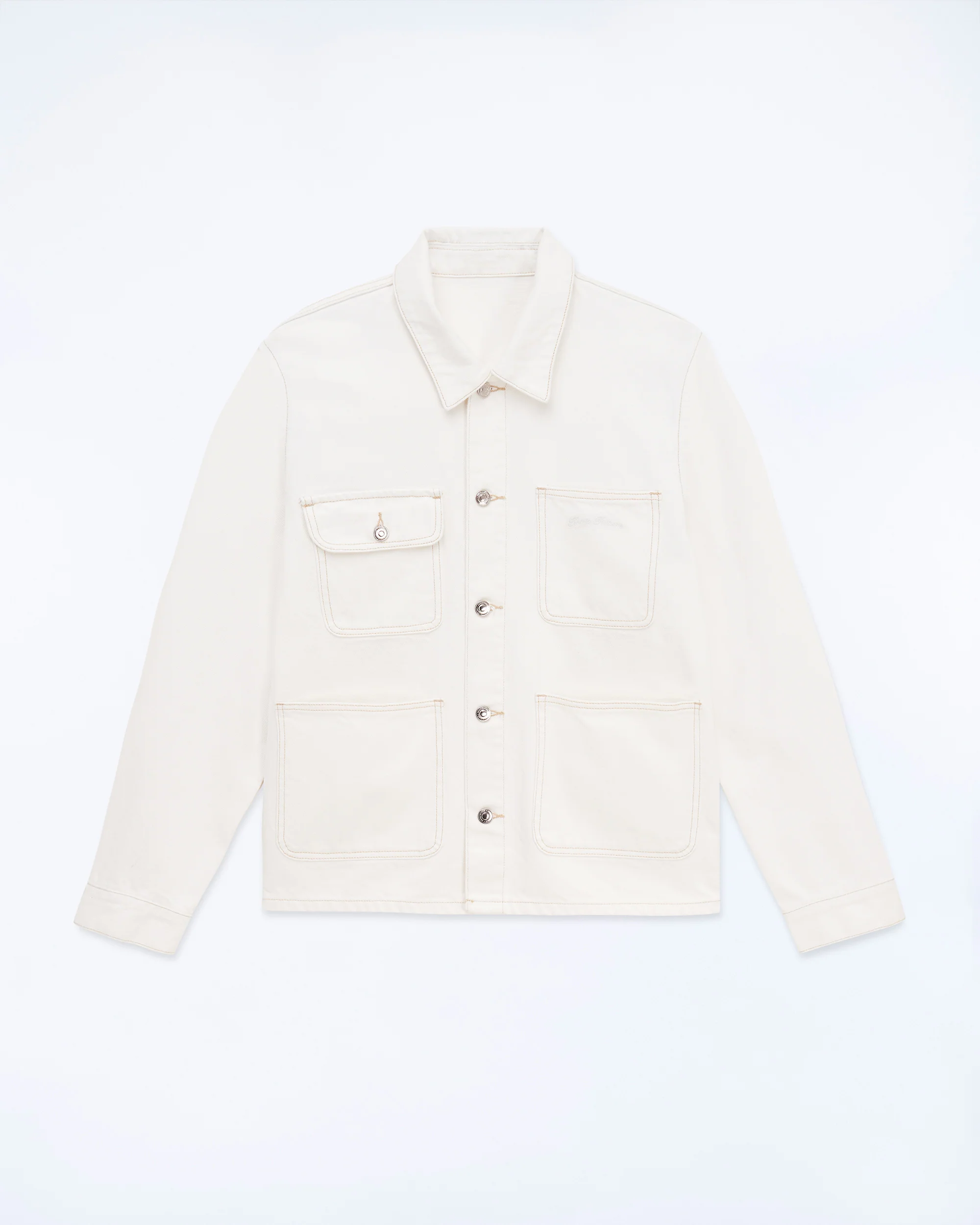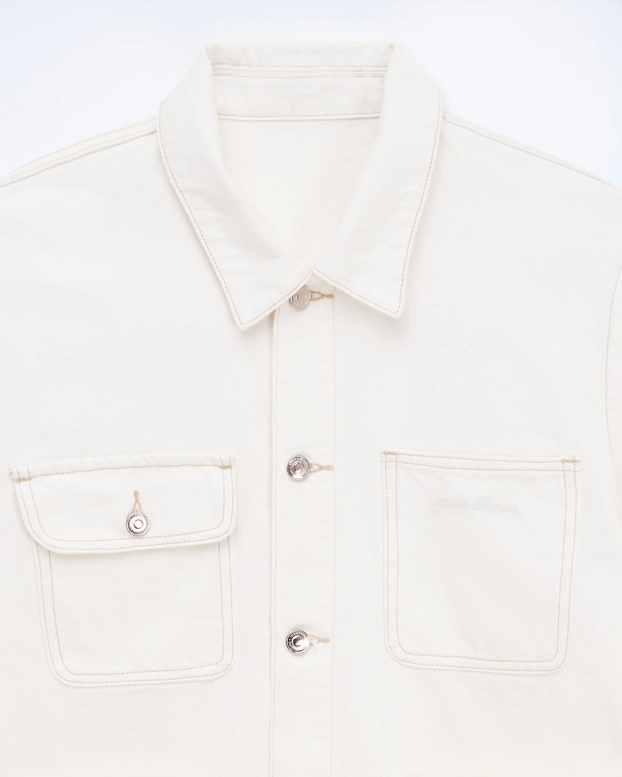 Experience cosmic elegance and futuristic style in this denim worker jacket. With a shirt neck and long sleeves, it features a signature “From Future” chest pocket, a buttoned flap pocket, and two side pockets. Easy to pair, wear it with a straight jeans or a tailored pants.