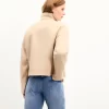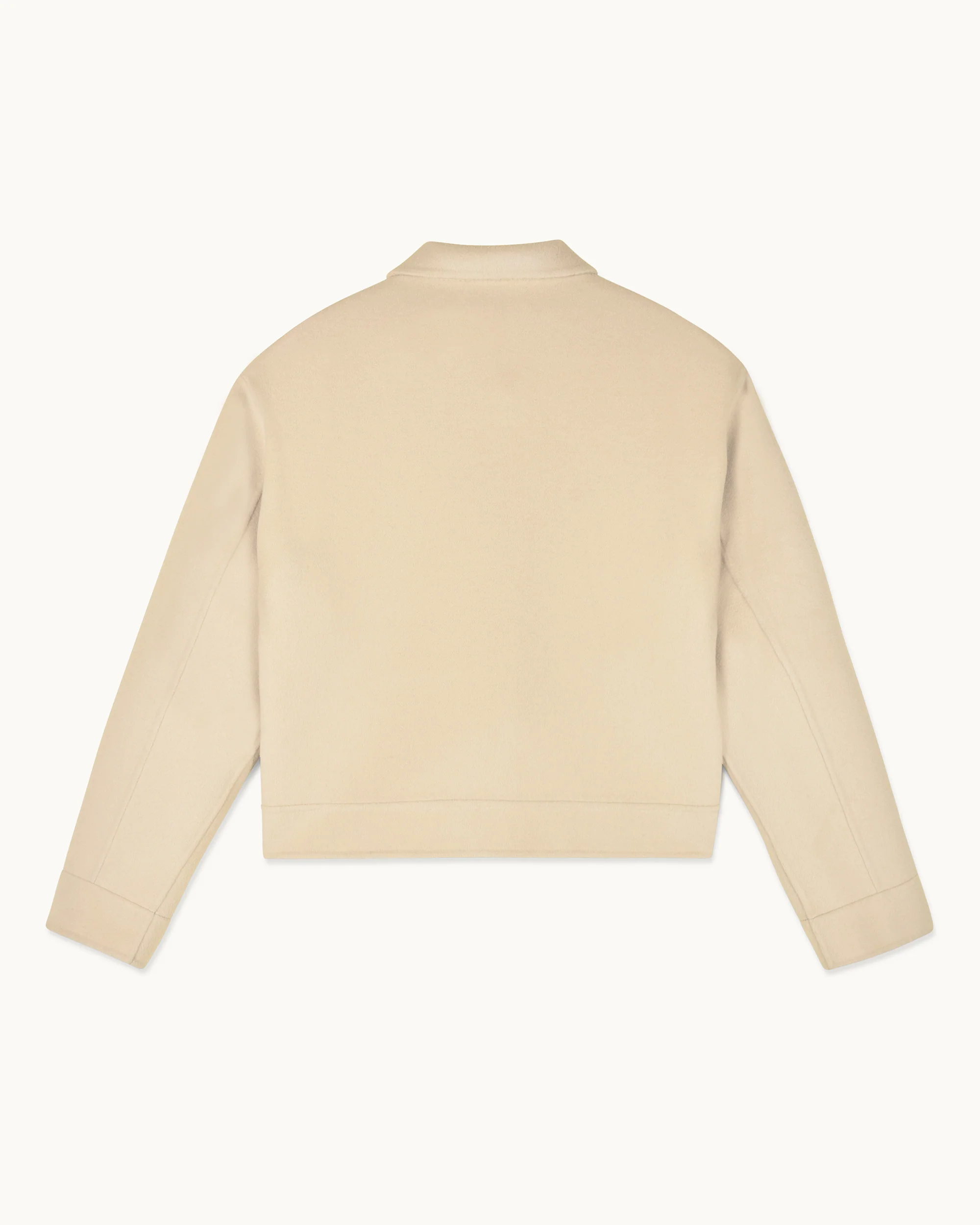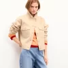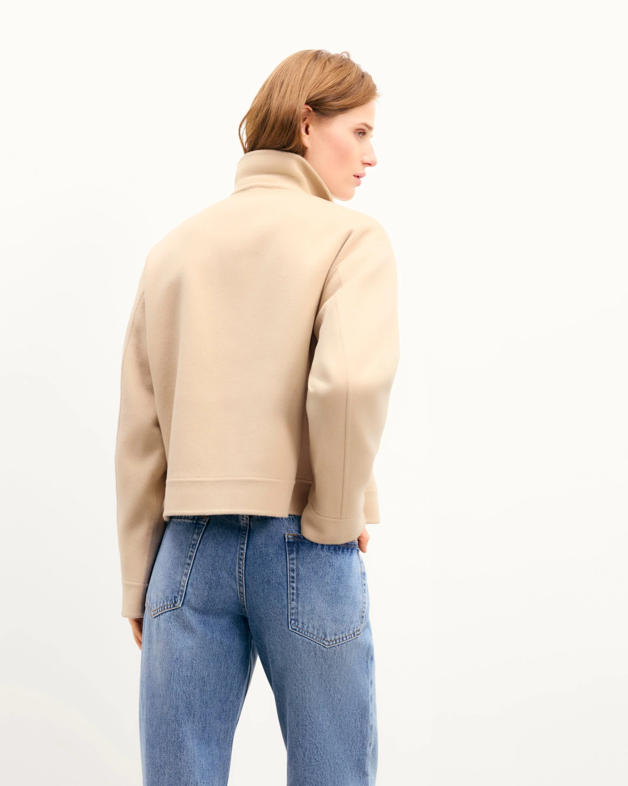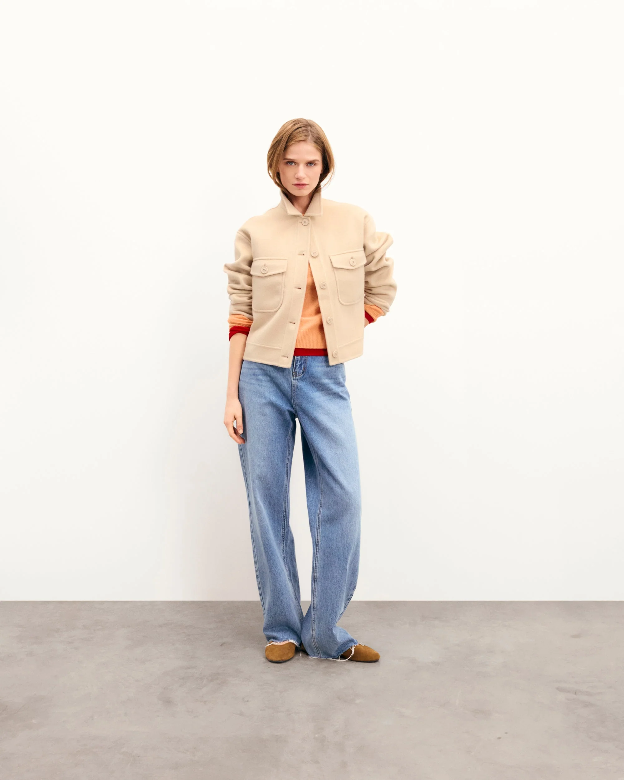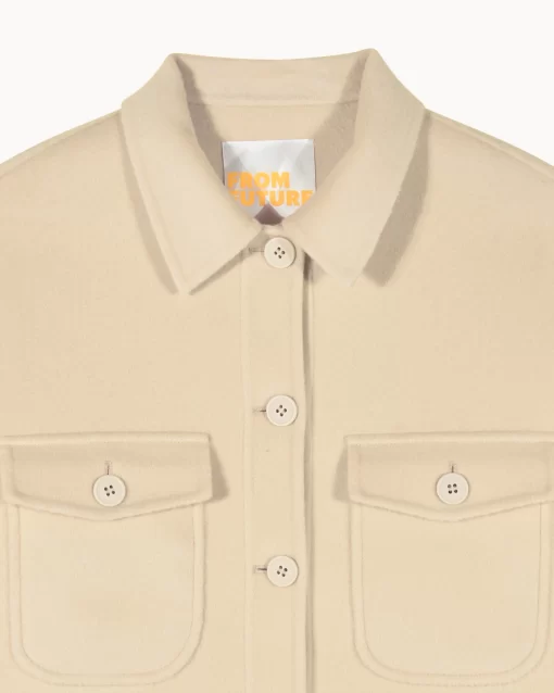 Cozy up in this structured wool jacket. It features a shirt neck, button closure, and two flap pockets for a timeless look. Perfect for layering over your favorite jeans or a dress.