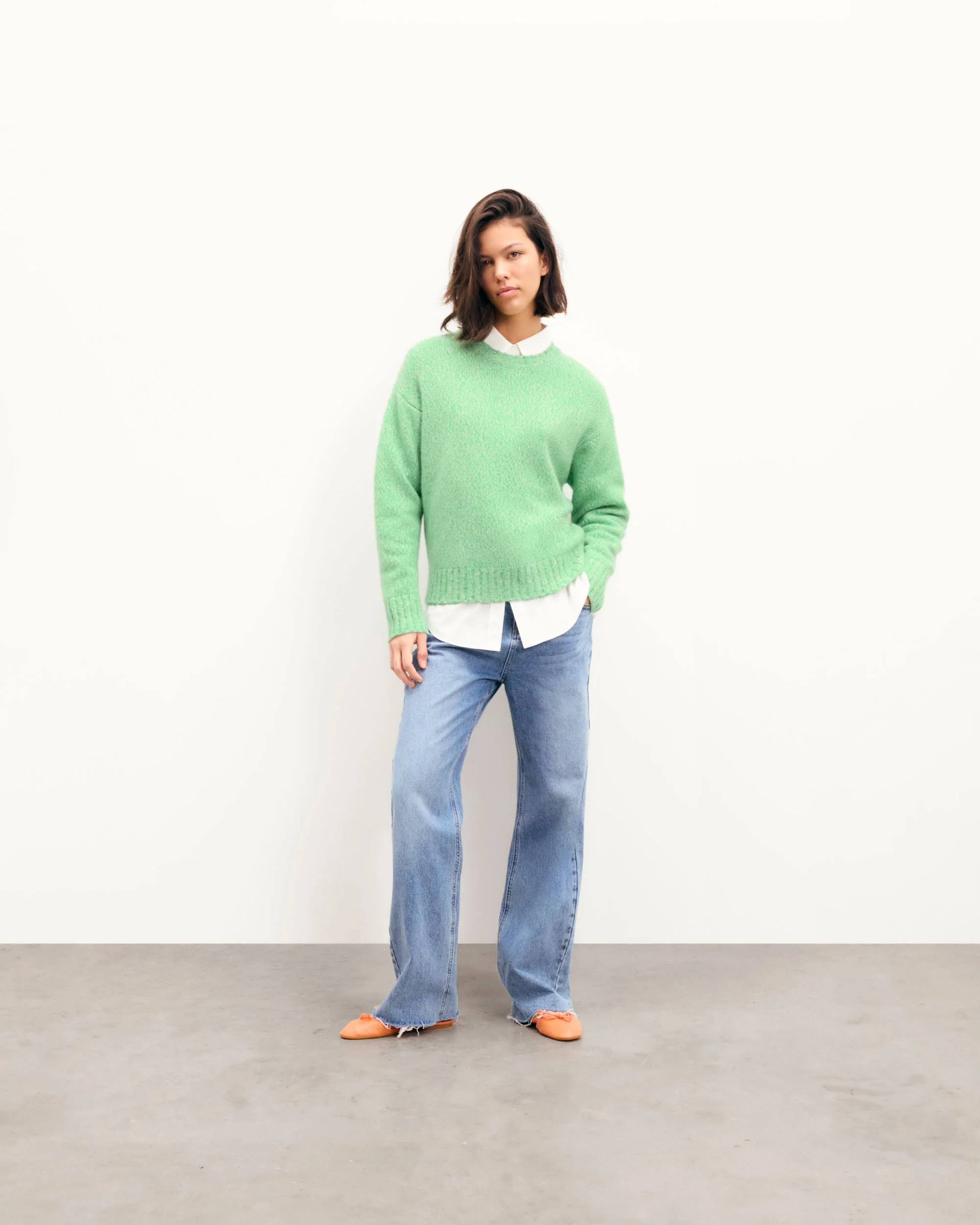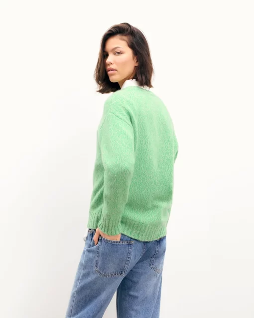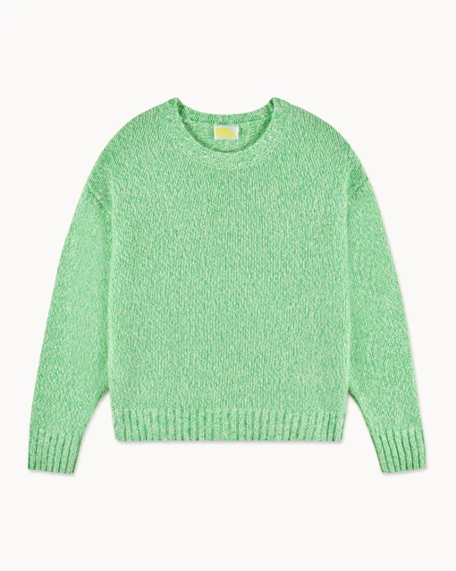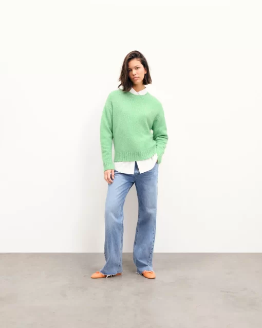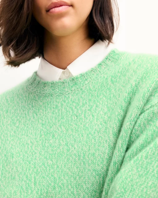 Crafted from 4-ply cashmere, this sweater features a mouline knit and an oversized fit. Its crew neck and long sleeves create an effortlessly elegant look. Pair it with tailored pants or a flowing skirt for a versatile ensemble.